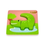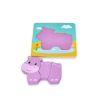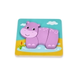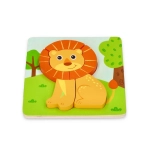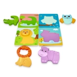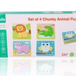 Kinder setzen nach und nach Krokodil, Nilpferd, Eule und Löwe zusammen – jedes Motiv auf einer separaten Holztafel fördert Konzentration und die Freude am Erfolg.
