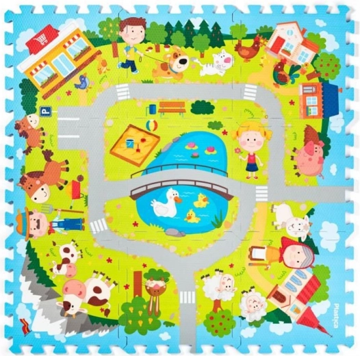 Das Schaumstoff-Bodenpuzzle Dorf ist die ideale Wahl für Kinderzimmer und Spielecken. Die Teile mit Farbdruck ergeben eine Spielfläche, die sich angenehm anfühlt, leicht zu pflegen ist und Kinder zugleich vor Kälte vom Boden schützt. Die gerippte Oberfläche ohne herausnehmbare Elemente erhöht die Sicherheit beim Spielen.