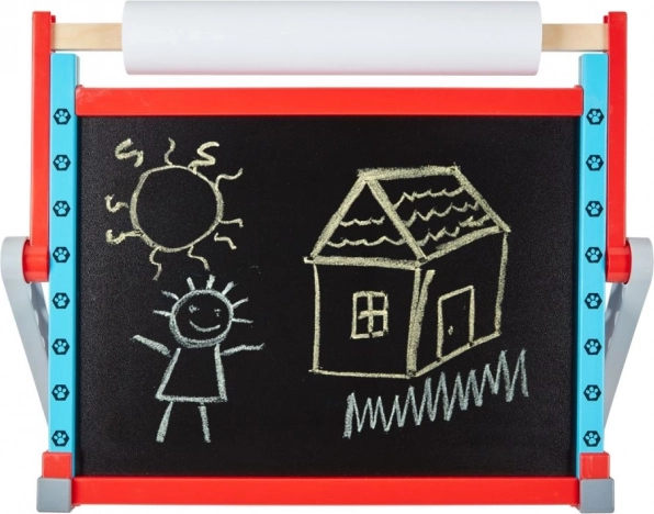 Der integrierte Halter mit Papierrolle unterstützt Malen mit Pinseln und Filzstiften. Einfach abreißen und fertige Bilder ausstellen.