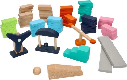 Bauen Sie Ihre eigene Domino-Rallye – von einfachen Linien bis zu mehrstöckigen Strecken. Das Komplettset aus zertifiziertem Holz bietet moderne Farben, hochwertige Verarbeitung und umfangreiches Zubehör für ein dynamisches Spiel. Dank interaktiver Elemente entstehen überraschende Effekte und Kinder üben Geduld, Konzentration sowie das Verständnis von Ursache–Wirkung.