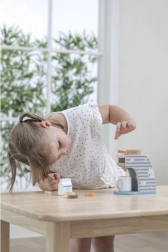 Das Set unterstützt soziales Spielen, trainiert die Hand-Auge-Koordination und vermittelt Grundregeln des Tischdeckens. Glatte, sichere Kanten und die stabile Holzkonstruktion sind ideal für das tägliche Spielen im Kinderzimmer oder Kindergarten.