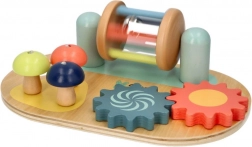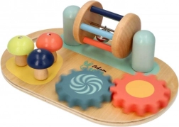 Holzsinnes-Aktivitätsbrett von der Marke Adam Toys bietet eine bunte sensorische Stimulation und die Entwicklung der Feinmotorik für die Kleinsten durch drehende Zahnräder und Spiel-Mushrooms.