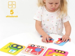 Entdecken Sie das erste Puzzle für die Kleinsten! Das Set enthält 5 bunte Puzzles mit jeweils 4 Teilen mit niedlichen Fahrern und Fahrzeugen. Stabile Teile liegen gut in kleinen Händen und fördern Feinmotorik, Aufmerksamkeit sowie Farben- und Wortschatzlernen. Einzigartig ist die Möglichkeit, Teile zwischen den Puzzles zu tauschen und eigene Kombinationen zu gestalten.