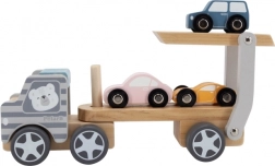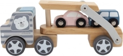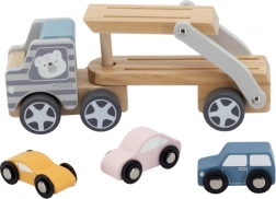 Der Holz-Abschleppwagen VIGA PolarB bringt Kindern Spielspaß und Lernen in einem. Das Set umfasst einen Lastwagen mit Anhänger und drei farbige Autos, die sich mithilfe der kippbaren Rampe leicht verladen lassen. Langlebiges Holz und sorgfältige Verarbeitung sorgen für eine lange Nutzungsdauer, während ungiftige Farben nach EN71 und ASTM tägliche Sicherheit garantieren.