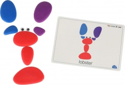 Steinchen in verschiedenen Größen ermöglichen das Legen von Tieren, Gegenständen und fantasievollen Bildern. Die Karten dienen als Inspiration und Schablonen für eigenständiges Gestalten.