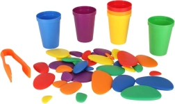 Die mitgelieferte Pinzette unterstützt den richtigen Griff und die Hand-Auge-Koordination. Kinder transportieren die Steinchen in die Becher und trainieren Präzision und Konzentration.