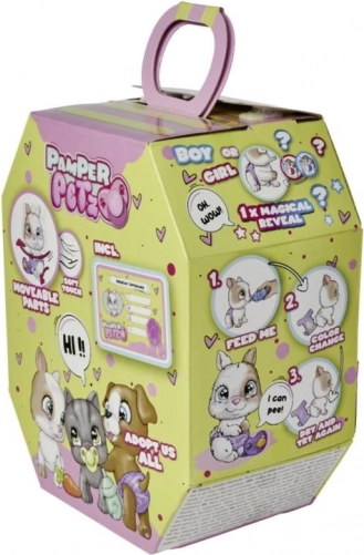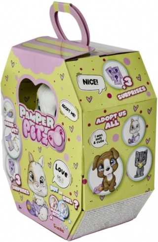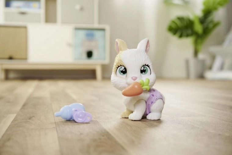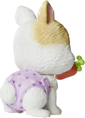 Das niedliche Häschen aus der Reihe Pamper Petz sucht eine neue Bezugsperson, die ihm einen Namen gibt und es mit Liebe umsorgt. Es kann echtes Wasser trinken aus dem Fläschchen und in die Windel machen, die bei Nässe die Farbe wechselt. Dank der magischen Pfote erfährst du außerdem, ob es ein Mädchen oder ein Junge ist. Enthalten sind eine tragbare „Häuschen“-Verpackung aus Papier mit Henkel und Überraschungs-Accessoires. Geeignet ab 3 Jahren.