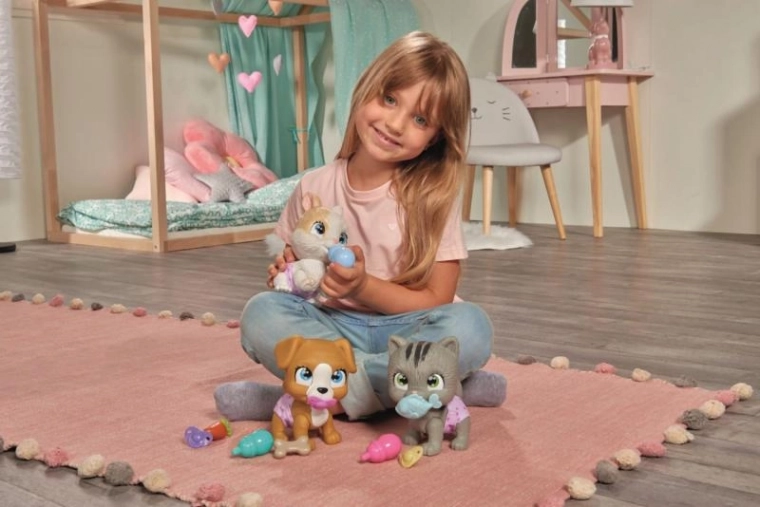 Entdecke die zauberhafte Welt der Pamper Petz! Das Häschen ist ein weicher Spiel- und Pflegebegleiter, der Kindern die Grundlagen der Tierfürsorge näherbringt. Gib ihm etwas aus dem beiliegenden Fläschchen zu trinken und sieh zu, wie es „in die Windel macht“, die bei Feuchtigkeit die Farbe wechselt – eine spielerische Funktion, die interaktives Spielen fördert.