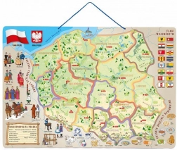 Die Karte erfüllt die Sicherheitsanforderungen für Spielzeug (CE). Dank der hochwertigen Verarbeitung und des attraktiven Designs ist sie eine hervorragende Hilfe beim ersten Kennenlernen der Geografie Polens.