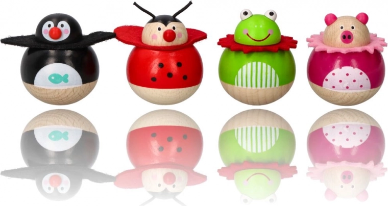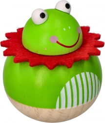 Die abgerundete Unterseite sorgt dafür, dass sich der Frosch nach jedem Anstoßen von selbst wieder in die Senkrechte bringt. Ideal für erste Erkundungen von Gleichgewicht und Ursache–Wirkung.
