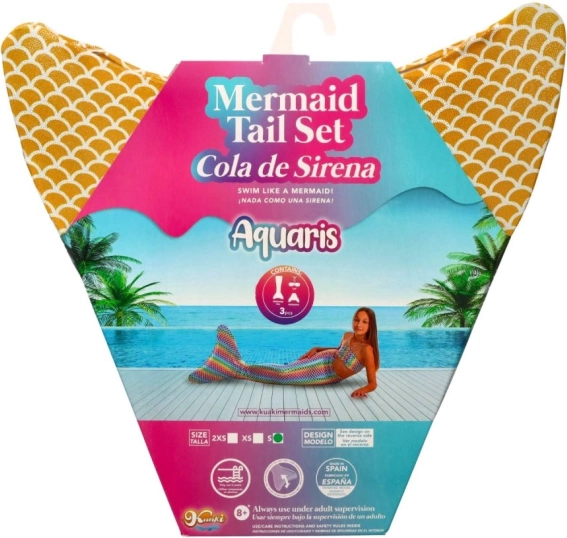 Mit dem Set Flosse und Bikini Aquaris Sunny wird Ihr Kind buchstäblich eine Untersee-Schifffahrt genießen! Dieses Kostüm ist unter Berücksichtigung der Sicherheit und des Komforts der Kinder gestaltet, jedoch wird die Verwendung unter Aufsicht eines Erwachsenen empfohlen. Es gibt drei Größenvarianten: 2XS, XS und S, damit jedes Kind seine richtige Größe finden kann.