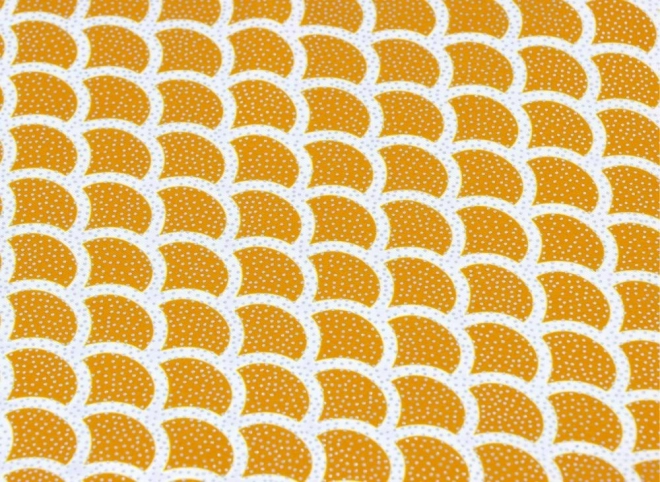 Das verwendete Material ist so konzipiert, dass es gewöhnlicher Abnutzung und Tränen standhält. Ein Muster aus orangen Halbkreisen und weißen Punkten auf einem weißen Hintergrund verleiht der Flosse einen eleganten visuellen Eindruck.