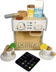 Bereichern Sie das Kinderspiel mit diesem fantastischen hölzernen Set aus Kaffeemaschine und Teekocher für die Haus- und Küchenspiele. Das Set ist so konzipiert, dass die Kinder die Getränkezubereitung imitieren und sich bei kreativem Spielen amüsieren können. Diese Kaffeemaschine ist aus hochwertigem Holz gefertigt, was ihre Langlebigkeit und Sicherheit für Kinder gewährleistet.