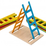Die einzigartige Holzkonstruktion sorgt für ein abwechslungsreiches und visuell ansprechendes Spiel. Die farbigen Leitern in leuchtenden Gelb-, Blau-, Rot-, Grün- und Orangetönen regen zu kreativem Spiel an.
