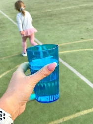 Die gerippte Form liegt auch in kleinen Händen gut. Das Fassungsvermögen von 170 ml ist genau richtig für die ersten Schlücke.