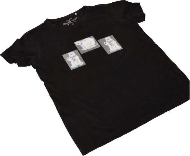 Schnelles und zuverlässiges Übertragen ohne Dampf bei 150–180 °C für 10–15 Sekunden. Nach dem Abkühlen Folie einfach abziehen.