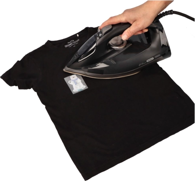 Motiv auflegen, darüberbügeln und in wenigen Augenblicken ist es fertig. Perfekt für schnelle Fleckenabdeckung und kreative Personalisierung.