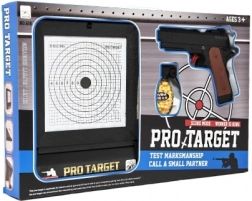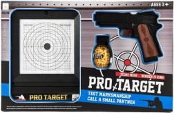 Die attraktive PRO-TARGET-Verpackung zeigt den Inhalt auf einen Blick – Pistole, Zielscheibe und Platz für Munition, ideal als Geschenk.