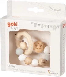 Dieser sensorische und motorische Ring wurde entwickelt, um Kindern die Welt der Berührung und Formen näherzubringen. Die Kombination aus Holz und Silikon bietet unterschiedliche Texturen, die die Finger stimulieren und die korrekte Entwicklung des Greifens unterstützen. Durch die elastische Ausführung liegt der Ring gut in der Hand und ist ideal für die ersten Greifversuche.