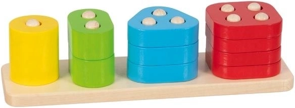 Dieses durchdachte Holzspiel der Marke GOKI unterstützt die Entwicklung der Feinmotorik sowie die Hand-Auge-Koordination. Kinder fädeln die farbigen Teile auf einen Stab mit Stiften – das wirkt wie ein kleiner Knobelspaß und motiviert zu Geduld und Genauigkeit. Gleichzeitig festigen sie beim Spielen ihr Wissen über Farben und Formen.