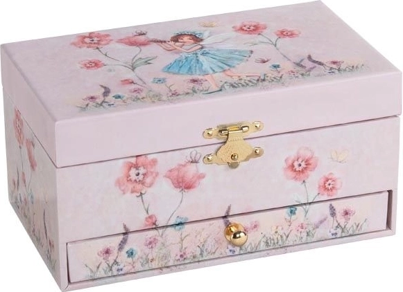 Das Innere des Schmuckkästchens bietet kleine Fächer und eine praktische Schublade für eine ordentliche Organisation. Dank der dekorativen Gestaltung mit Mohnblumen-Motiv wird es zu einem charmanten Blickfang im Kinderzimmer.