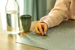 Die runde Form und das monochrome silberne KRYPT-Design ergeben eine echte Herausforderung – gepuzzelt wird nach Formen und Verbindungen, nicht nach einem Bild.