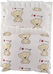 Kissen 23 × 28 cm, Unterlage 50 × 30 cm, Bettdecke 35 × 28 cm – passen hervorragend in Puppenwagen und Puppenbettchen.