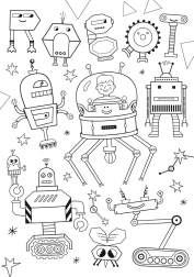 Eine Seite ist ein klassisches Puzzle mit Robotermotiv, die andere ist zum Ausmalen vorbereitet – die ideale Kombination für kreatives Spielen.