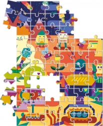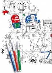 Das beidseitige Puzzle CLEMENTONI Roboter bietet Kindern doppelten Spaß: Zuerst entsteht ein Motiv voller fröhlicher Roboter, anschließend lässt sich die Rückseite individuell ausmalen. Hochwertige Materialien und exklusiver Druck garantieren langfristig lebendige Farben und Widerstandsfähigkeit auch bei häufiger Nutzung.