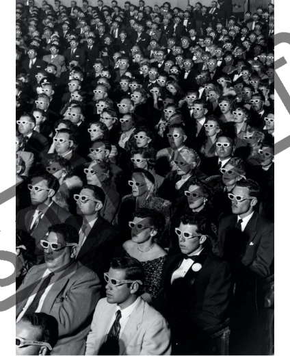Das klassische Foto eines Publikums mit 3D-Brillen verleiht dem Interieur Stil und einen markanten Kontrast. Nach dem Zusammensetzen ist das Bild bereit zum Einrahmen.