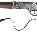 Das Gewehr verfügt über ein Magazin für 8 Schuss (je nach Art der Zündplättchen/Patronen – nicht enthalten) und einen bequemen Schulterriemen für einfaches Tragen. Perfekt als Ergänzung zu einem Cowboy-Kostüm und als stilvolle Requisite für Themen-Spiele.