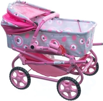 Gönnen Sie Ihren Kindern Spaß mit diesem stylischen Kinderwagen für Puppen. Dank des leichten Metallrahmens und den größeren Rädern bietet er einfache Handhabung und eine sanfte Fahrt. Der Kinderwagen verfügt über eine Wanne mit Beindecke, einen Korb und eine praktische Wickeltasche.