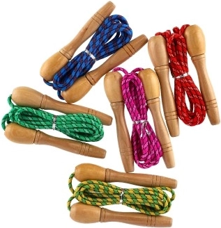 Universelles und stilvolles Springseil mit Holzgriffen, ideal für Spaß und Training. Erhältlich in fünf Farbkombinationen, bietet Komfort und Langlebigkeit für den täglichen Gebrauch.
