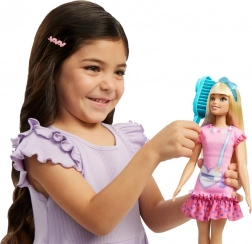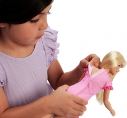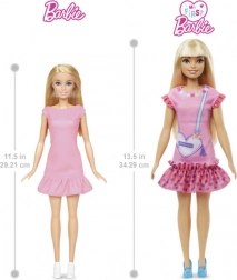 Betreten Sie eine Welt, in der Freundschaft beginnt und der Fantasie keine Grenzen gesetzt sind. Die Puppe aus der Reihe Meine erste BARBIE ist größer, leicht und angenehm flexibel, damit kleine Hände sie gut halten, anziehen und in Posen stellen können. Das rosa Kleid ist mit verspielten Details wie Rüschen und einer Herzhandtaschen-Grafik verziert; dazu passen ein Haarreif und Schuhe. Die langen blonden Haare laden zum Kämmen und Frisurenmachen ein und fördern ganz natürlich die Feinmotorik.