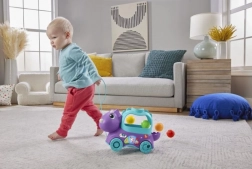 Gehen Sie auf fröhliche Entdeckungstour mit dem interaktiven Dino-Spielzeug von Fisher-Price, das Kinder mit seiner farbenfrohen und lehrreichen Art begeistert. Einfach anstoßen oder hinter sich herziehen und beobachten, wie die bunten Bälle darin hüpfen.