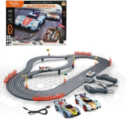 Im Lieferumfang enthalten sind zwei Rennwagen und zwei Handcontroller für sofortige Starts und präzise Geschwindigkeitskontrolle. Die Autorennbahn ist in einer tschechischen Box verpackt und eignet sich ideal als Geschenk für kleine und große Rennsportfans.