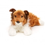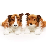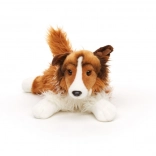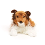 Dieses Plüschtier imitiert durch aufwendige Details in den Farben Braun und Weiß getreu einen Shetland-Schäferhund.