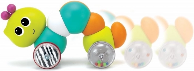 Die Raupe ermutigt das Kind, sich zu bewegen, fördert seine motorischen Fähigkeiten und Neugier.