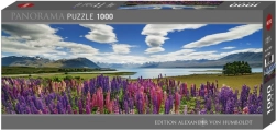 Entdecken Sie die Schönheit Neuseelands mit diesem Panorama-Puzzle mit 1000 Teilen, das den Lake Tekapo in zartem türkisem Ton, umgeben von Bergen und Blumen, zeigt. Ideal für Entspannung, Konzentrationstraining und ästhetischen Genuss beim Puzzeln.
