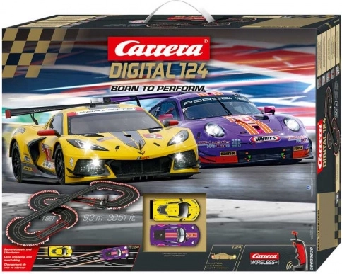 Carrera Digital 124 Born to Perform Slotcar-Bahn 9,3 m mit Porsche 911 RSR und Chevrolet Corvette