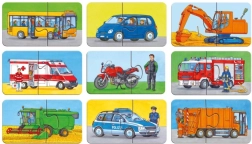 Dieses Set enthält 9 einzelne Puzzles mit jeweils 2 Teilen – mit Motiven wie Feuerwehr, Müllabfuhr, Bagger, Mähdrescher, Bus oder Motorrad. Durch die geringe Teilezahl ist das Puzzeln ideal für den Einstieg und unterstützt die richtige Entwicklung wichtiger Fähigkeiten.