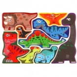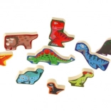 Die farbenfrohen Holzteile in Dinosaurierform motivieren Kinder zum Spielen und Lernen. Sie lassen sich leicht greifen und sicher in die Grundplatte einsetzen.
