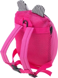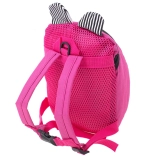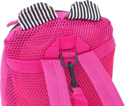 Das freundliche Bärchengesicht und die gestreiften Öhrchen motivieren Kinder, den Rucksack zu tragen und auf ihre Sachen zu achten.