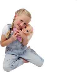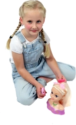 Der Frisierkopf Blond mit Zubehör ist die perfekte Wahl für kleine Stylistinnen, die Frisuren und kreatives Spielen lieben. Das dichte, hochwertige Haar lässt sich leicht kämmen und formen, sodass elegante Pferdeschwänze, französisch geflochtene Zöpfe und eine Fülle kleiner Zöpfchen gelingen. Zum Set gehört praktisches Zubehör, das bei jeder Verwandlung hilft.