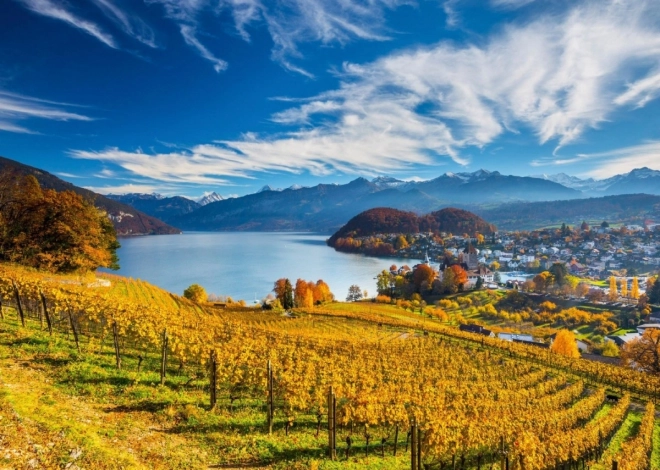 Erleben Sie die Freude an der Fertigstellung eines wunderschönen Puzzles mit dem Motiv von Weinbergen, das aus 2000 Teilen besteht.