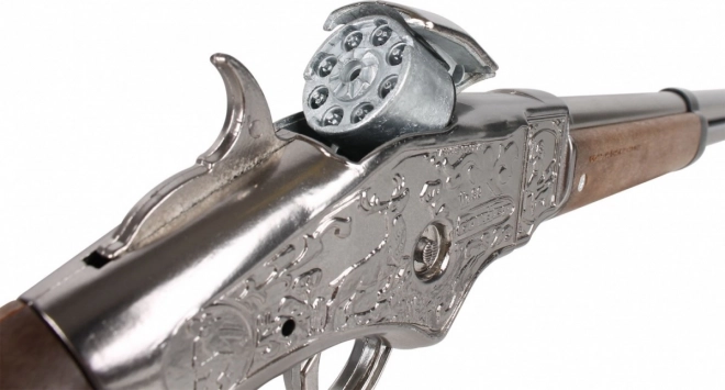Entdecken Sie die Welt des Wilden Westens mit diesem Cowboy-Gewehr, das dank seiner Metallkonstruktion und der Kapazität von 8 Schuss Authentizität und sicheren Spaß für Kinder bietet.