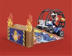 Gib Vollgas mit der Stuntshow von PLAYMOBIL! Sieh zu, wie der Stuntfahrer auf dem Quad losbraust, durch die Feuerrampe schießt und einen atemberaubenden Salto zeigt. Das Set ist der perfekte Einstieg in die Welt der Stunt Show und lädt zum kreativen Erzählen von Geschichten ein.