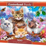 Genießen Sie das Zusammensetzen zauberhafter Puzzles mit dem Motiv von Kätzchen und Blumen. Dieses wunderschön illustrierte Puzzle-Set enthält 500 Teile und ist ideal für Puzzle-Liebhaber, die schöne Bilder mögen.