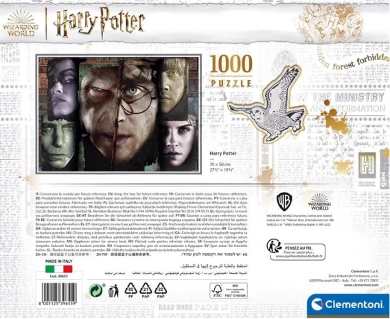 Entdecken Sie das zauberhafte Clementoni Puzzle mit 1000 Teilen im Harry Potter Briefkoffer-Design. Perfekt für Fans und Sammler, fördert es Konzentration und Problemlösungsfähigkeiten.