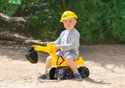 Der Bagger ist für sicheres Spielen im Außen- und Innenbereich konzipiert. Eine praktische Arretierung fixiert die Drehung beim Tragen oder beim Spiel jüngerer Kinder, die große Sitzfläche bietet Komfort und Sicherheit. Der ideale Begleiter für Sandkasten, Garten und Spielplätze.